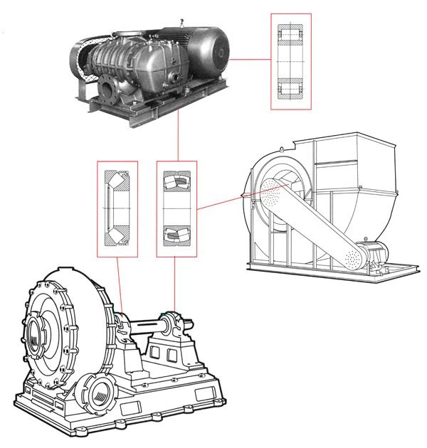 風(fēng)機(jī)行業(yè)應(yīng)用特點(diǎn)為連續(xù)、高速運(yùn)行、軸承易發(fā)熱、同時(shí)對(duì)軸承噪音有較嚴(yán)格的要求。針對(duì)風(fēng)機(jī)行業(yè)的運(yùn)行要求,軸承采用特殊設(shè)計(jì),開(kāi)發(fā)出了風(fēng)機(jī)專(zhuān)用軸承系列。既滿足了風(fēng)機(jī)行業(yè)對(duì)軸承的噪音要求,同時(shí)也很大地提高了軸承在風(fēng)機(jī)上的使用壽命。